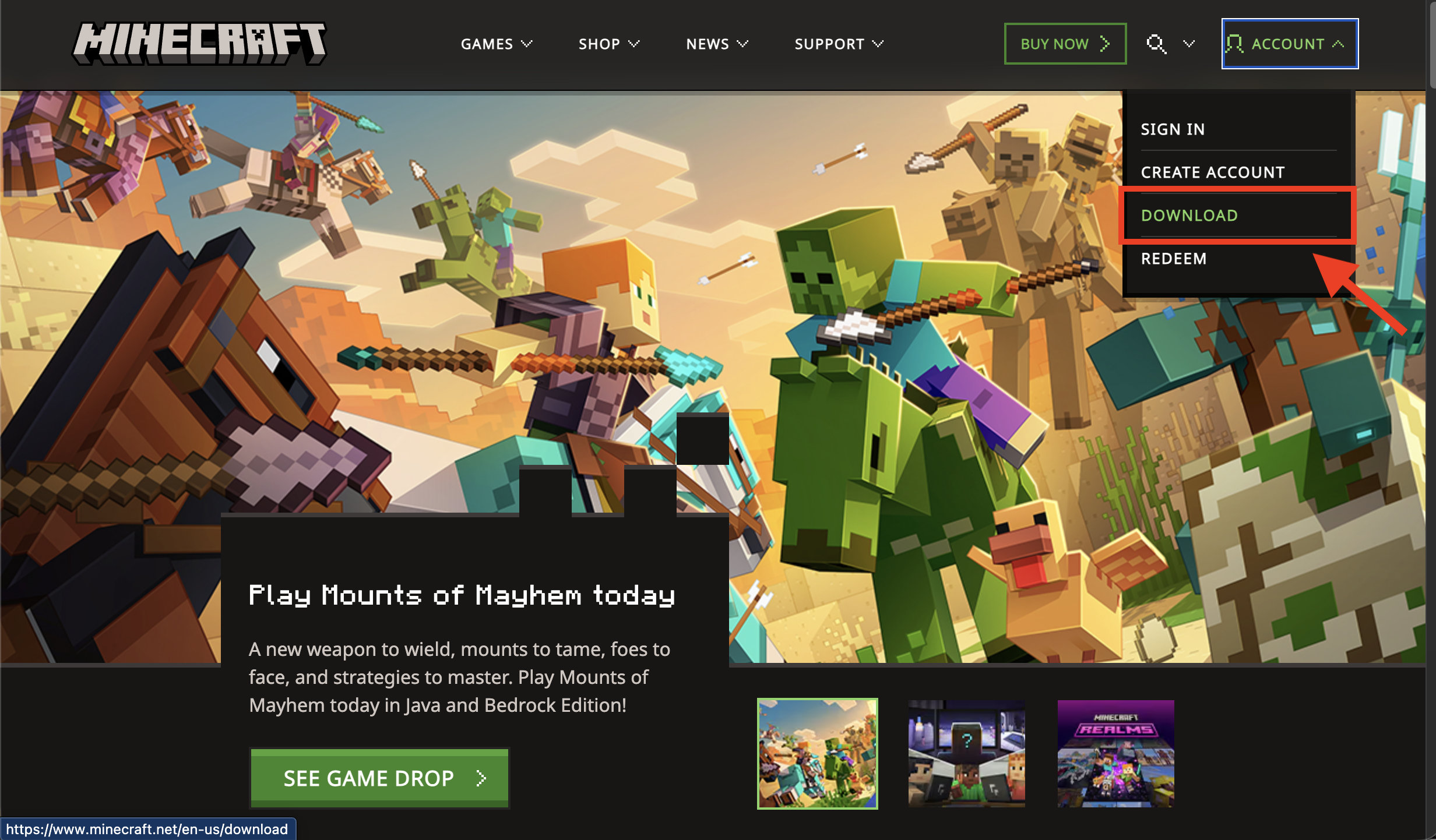 Bước 1: Truy cập trang chủ của Minecraft